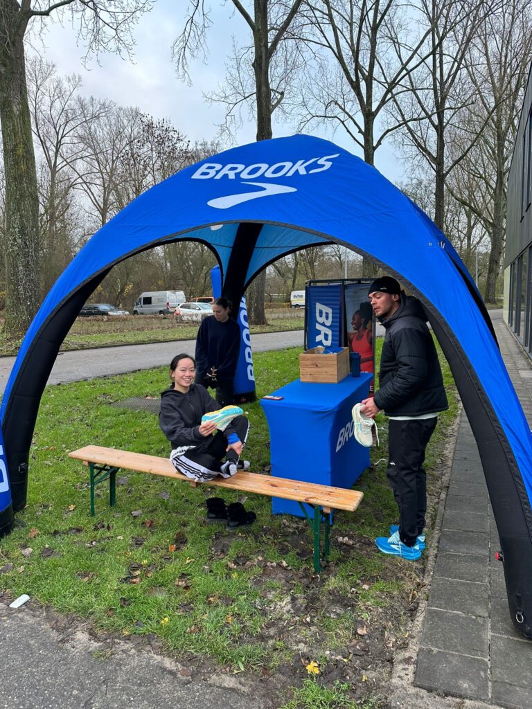 Er werd goed gebruik gemaakt van de optie om nieuwe schoenen van Brooks te testen. Zo werd vooral de Brooks Ghost Trail uitgeprobeerd. Dat was ook wel nodig want sommige stukken lagen er drassig bij.